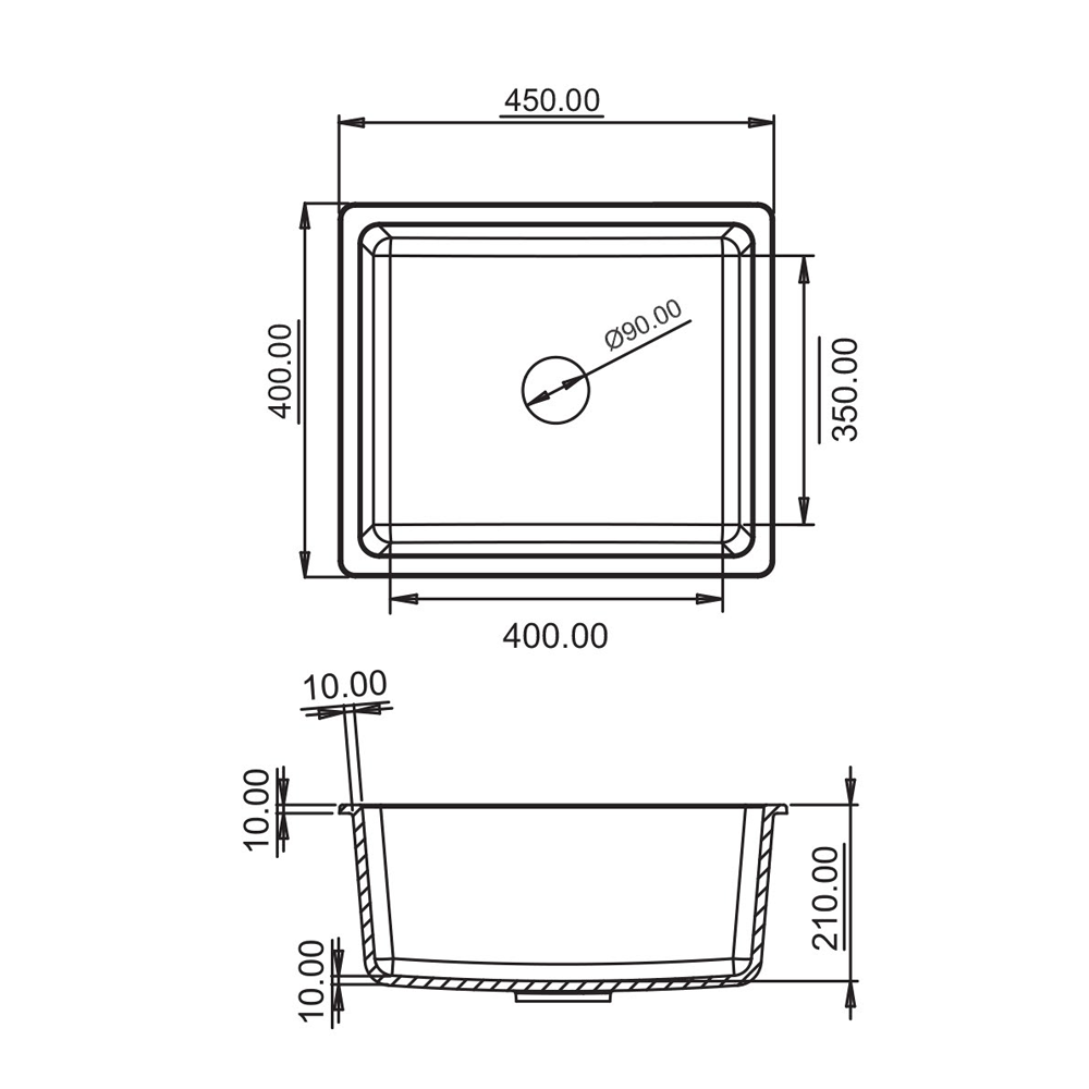 Radius curve on the corners of the square sinks enables it to avoid sticking of food waste and makes it easier to clean while maintaining hygiene.