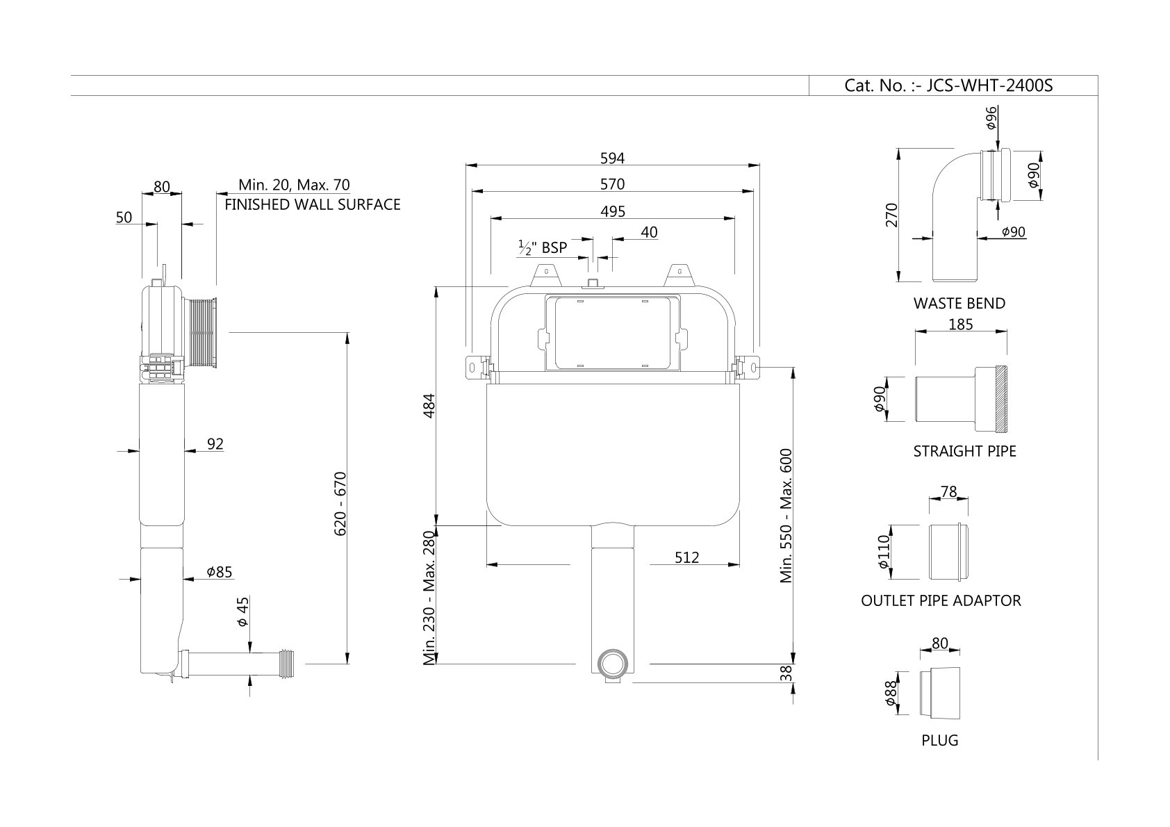 - Flush Control Plates: ABS chrome-plated flush control plates compatible with Single Piece Slim In-wall Cistern (JCS-WHT-2400S).
