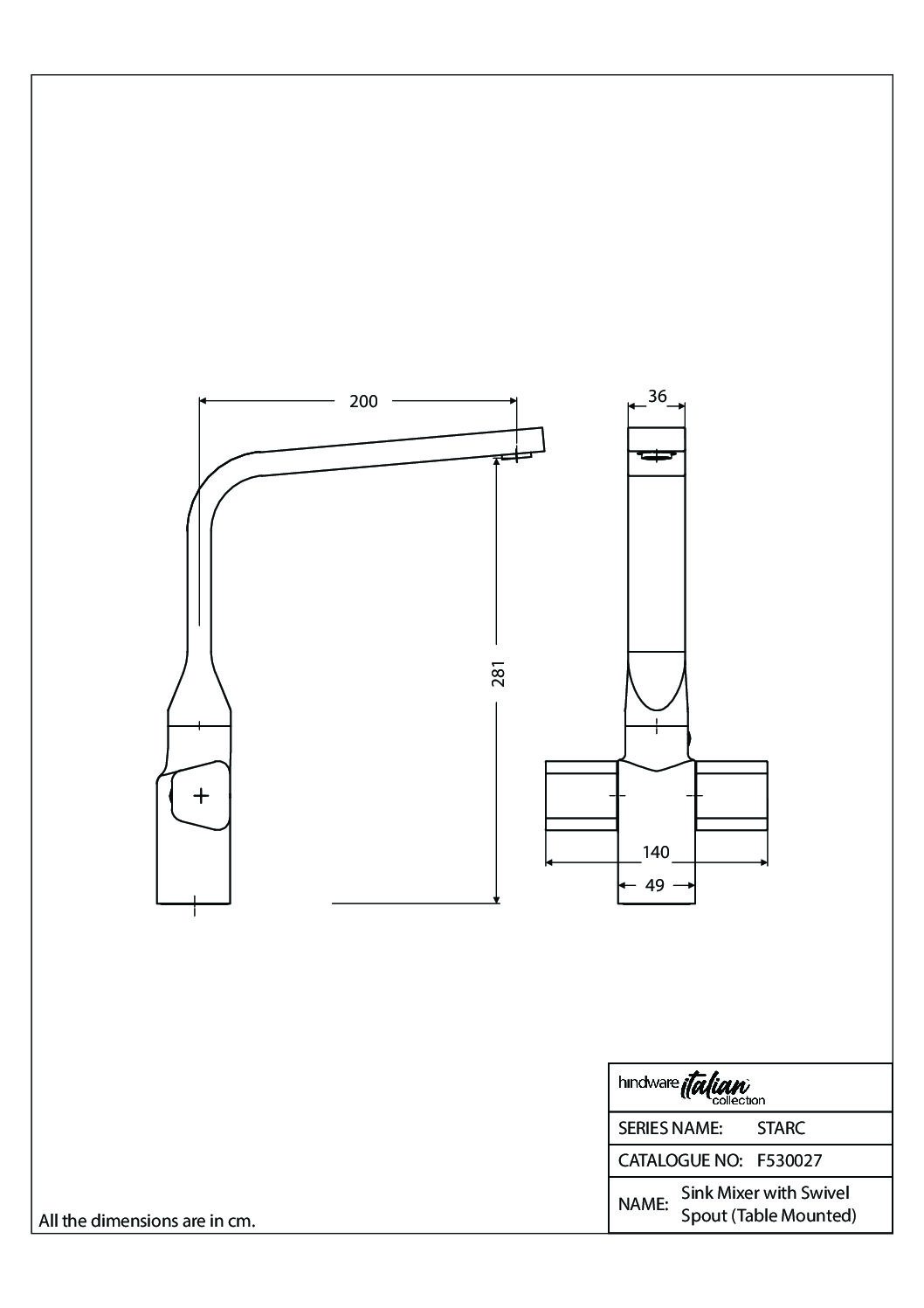 Starc Sink Mixer With Swivel Spout – Table Mount